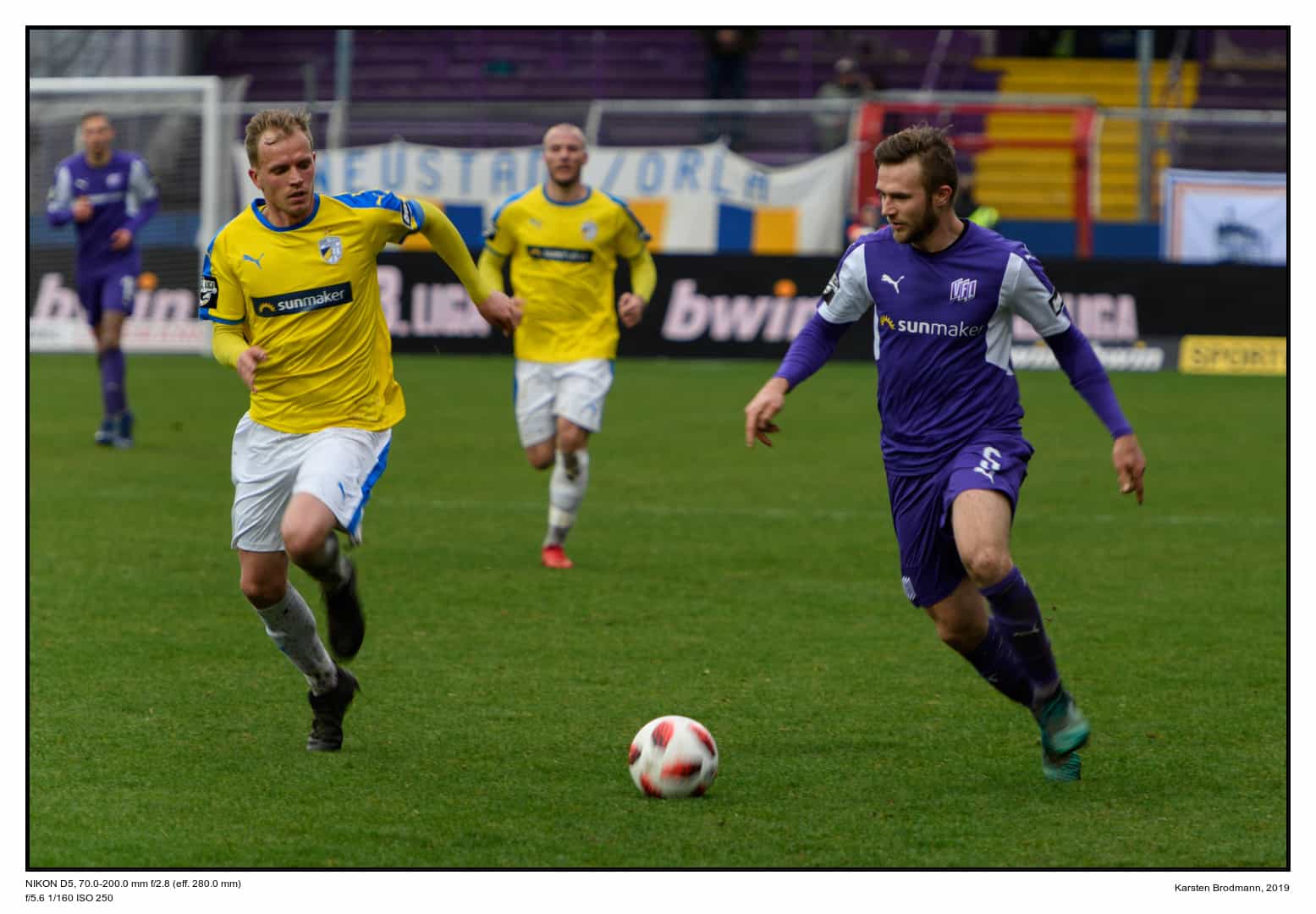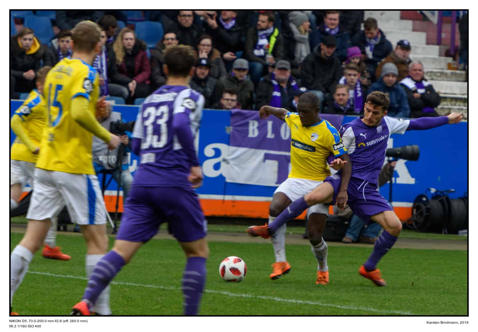 Profi-Sportjournalisten haben Objektive mit 400 oder gar 600 mm Brennweite. Ich habe nur ein 70-200er (Nikon AF-S Nikkor 70-200 mm, 1:2.8E FL ED VR). Deshalb habe ich mir den Nikon AF-S Telekonverter TC-20E III gekauft und getestet. Damit war ich heute, den 16. März 2019, beim VfL Osnabrück und habe die Kombination von Objektiv und Telekonverter getestet.